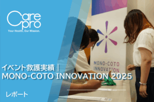 2023年7月31日から5日間、一般社団法人CREATION DRIVEが主催する「MONO-COTO INNOVATION 2023」にて、ケアプロツアーナースがイベント救護を行いました。 ▼MONO-COTO INN […]